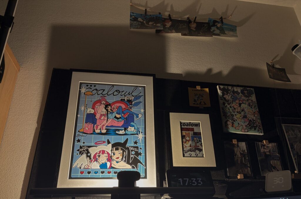 自分はデスクに色々と絵などを飾っていて、後ろを照らしたいと常々思っていました。そのために別途こんなライトを買ったりもしたのですが、